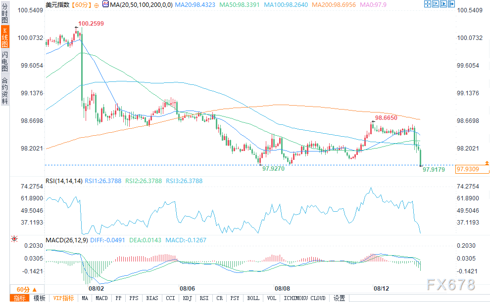 Pepperstone激石——今日美国劳工统计局发布的7月CPI报告显示通胀温和,推高美联储降息预期,美元指数盘中下跌0.50%至97.85。7月CPI环比上涨0.2%,同比2.7%,低于市场预期的2.8%;核心CPI环比上涨0.3%,同比3.1%,略高于预期的3.0%。